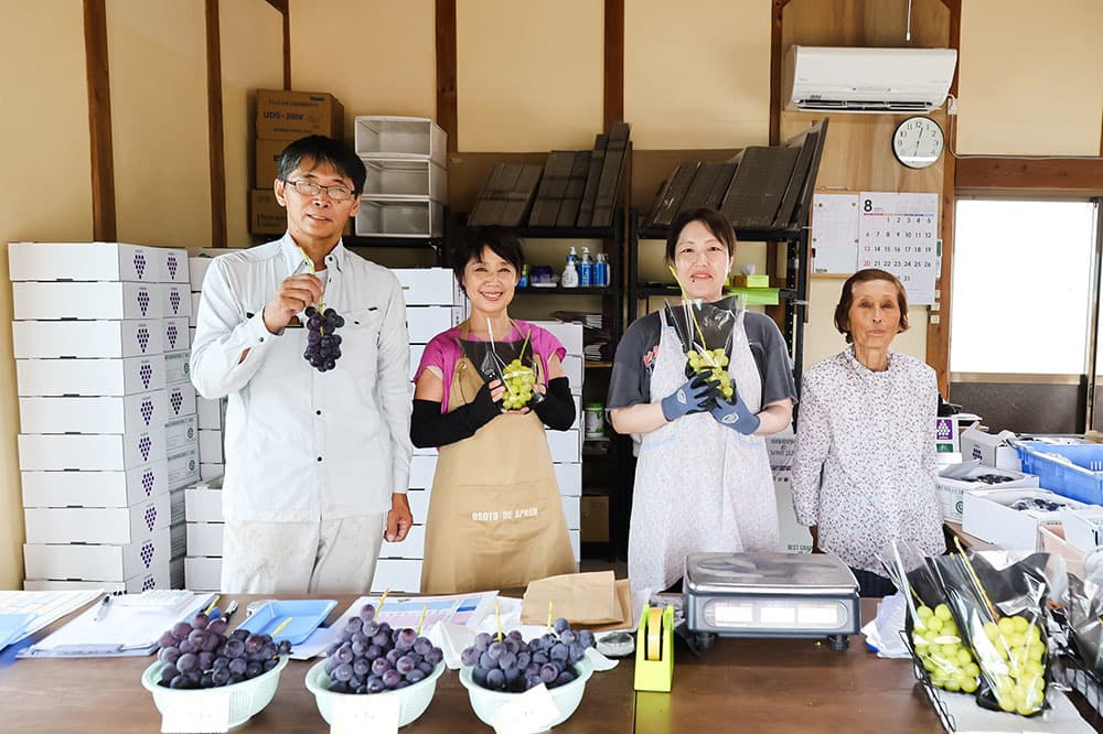 やま彦ぶどう園では濃厚な甘み豊かな巨峰をはじめ、皮ごと食べられるシャインマスカットや優雅な紅色で味わい深いクイーンニーナなどを直売しています。是非ご賞味ください。夏の贈り物として全国発送もご利用ください。